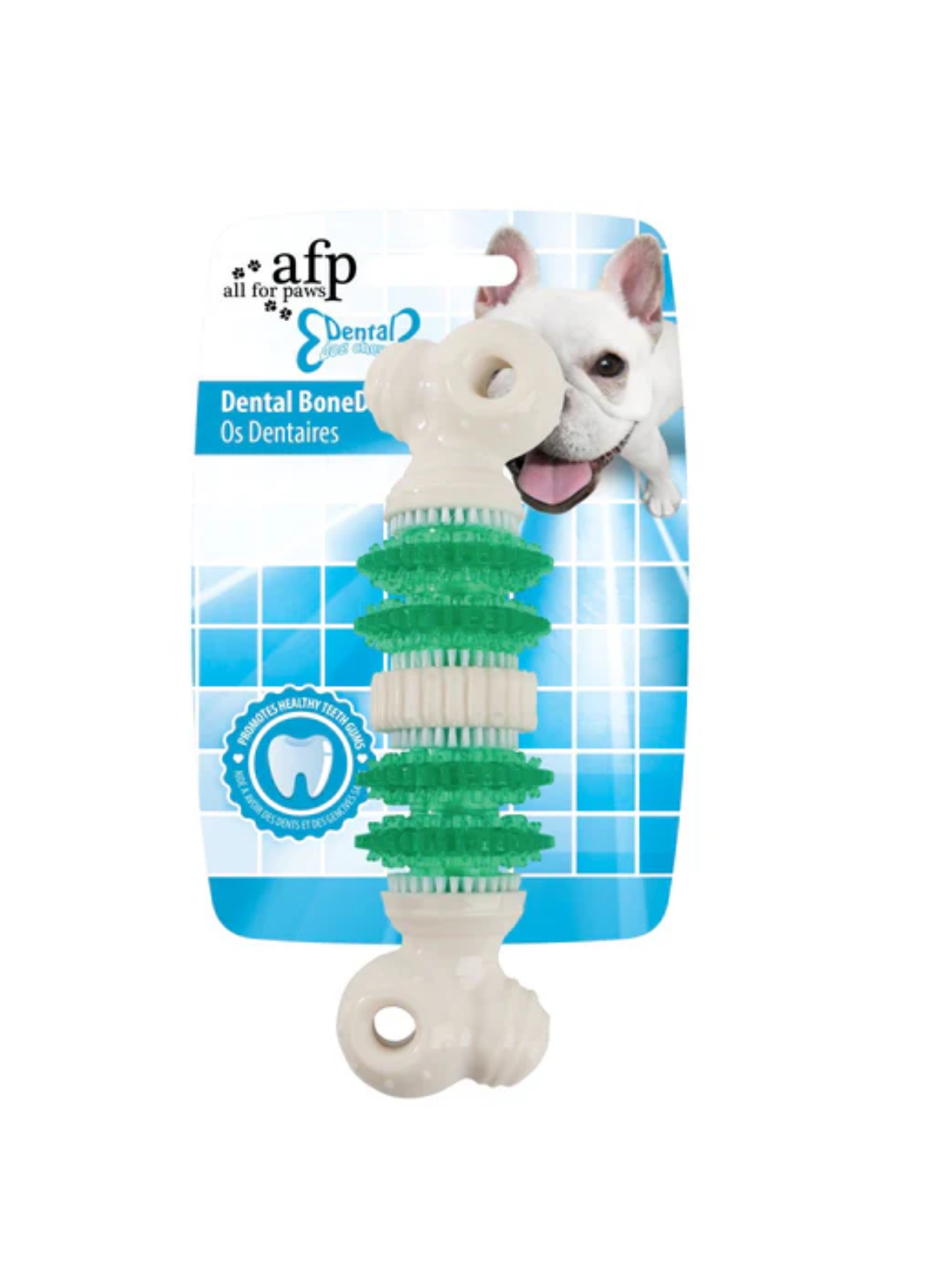 Ce jouet est doté de rainures et de picots conçus pour aider à éliminer la plaque dentaire et le tartre pendant que votre chien le mâche. Pour un nettoyage optimal, utilisez l’os dentaire avec un dentifrice pour chien pour une haleine fraîche et agréable.